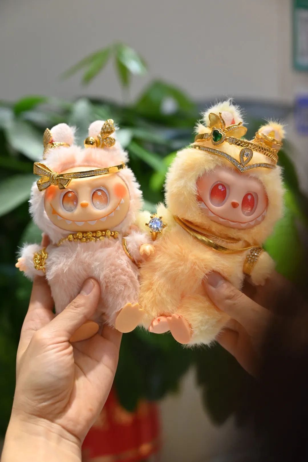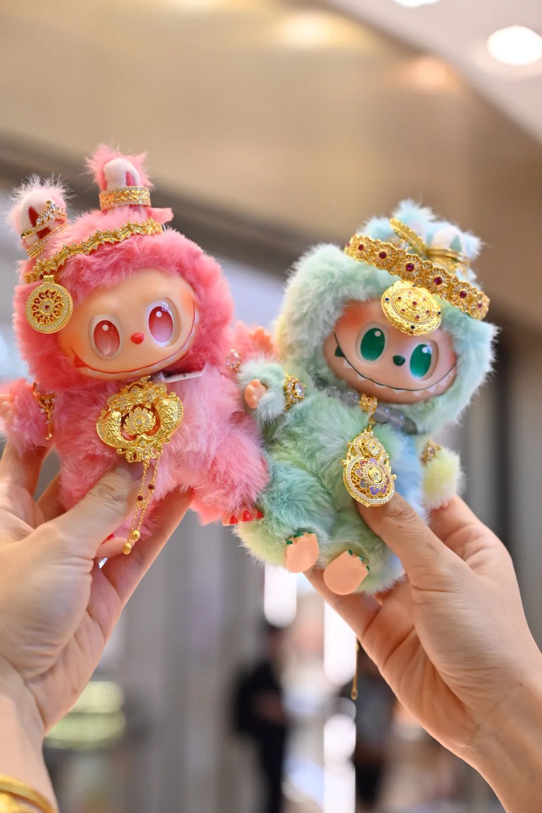 黄金珠宝首饰+Labubu=富贵双倍!珠光宝气的Labubu,谁能不爱?黄金硬通货保值,Labubu情绪价值拉满,二者组合,绝佳搭配。